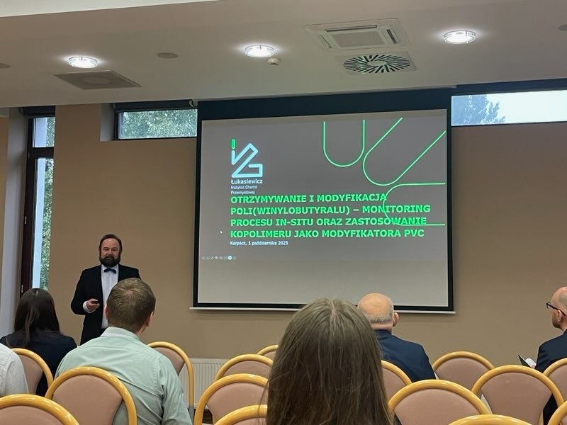 Kolejny referat wygłosi Marcin Kumosiński, który wspólnie ze Sławomirem Pawłowskim, Michałem Kędzierskim oraz Agnieszką Abramowicz, opracowali innowacyjne metody modyfikacji poliwinylobutyralu (PVB). Polega ona na zastosowaniu monitoringu in-situ w kontroli procesów wytwarzania kopolimerów, które mogą znaleźć zastosowanie jako modyfikatory PVC, co wskazuje na wysoki poziom zaawansowania prowadzonych badań z pogranicza inżynierii materiałowej i chemii polimerów.