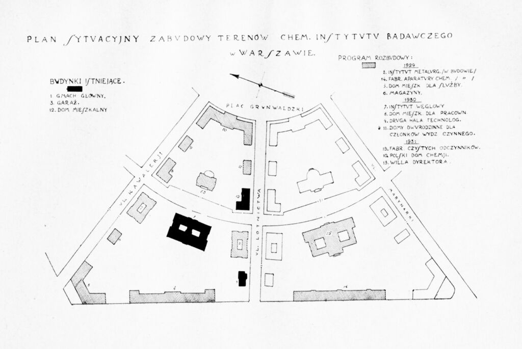 W 1936 roku Instytut nabył grunty na własność aktem notarialnym, za 1 175 000 złotych w złocie. Na tych samych terenach planowano zbudować Dom Chemii — miejsce, w którym miały się znaleźć siedziby Polskiego Towarzystwa Chemicznego, Związku Zawodowego Pracowników Przemysłu Chemicznego i redakcje czasopism branżowych. Całe centrum polskiej chemii w jednym miejscu.