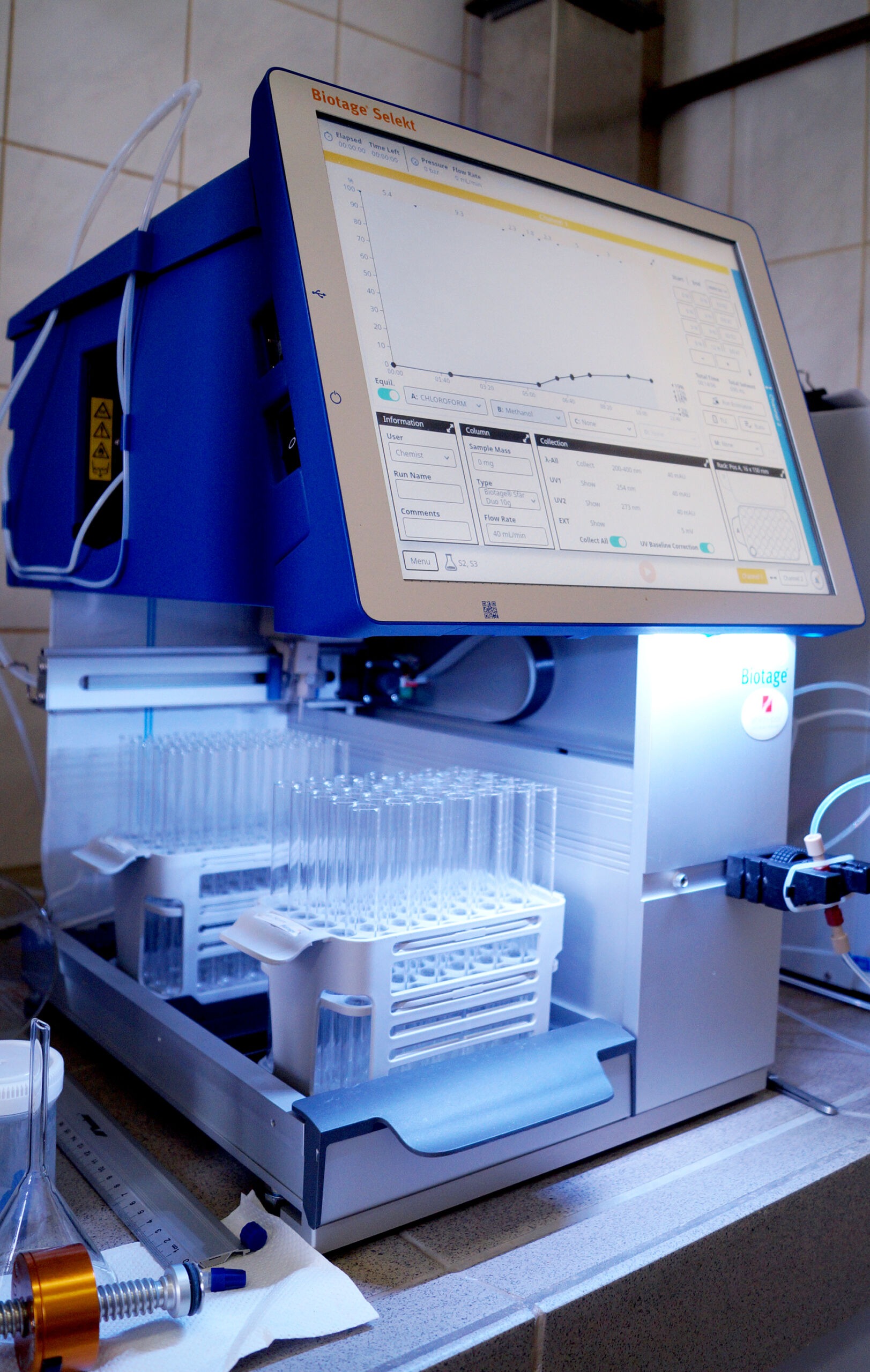 • Flash chromatografy Biotage z detektorem DAD oraz ELSD