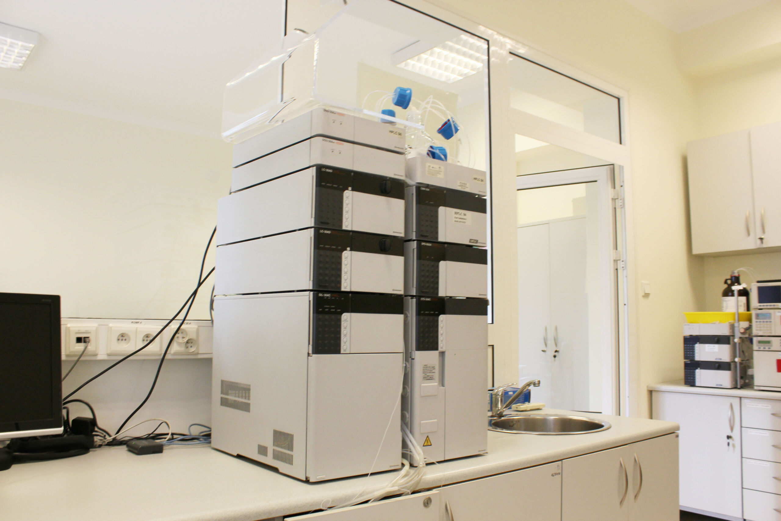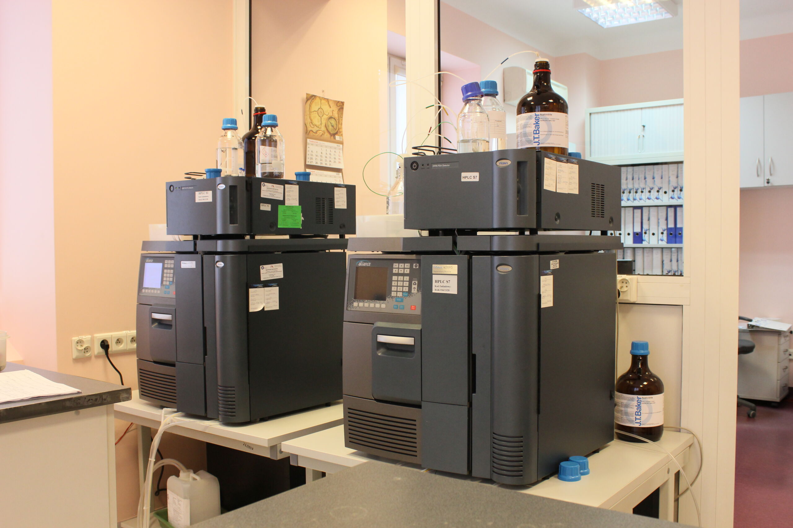 - Systemy HPLC Shimadzu i Waters (HPLC, UPLC) z detektorami UV-VIS, DAD, refraktometrycznym