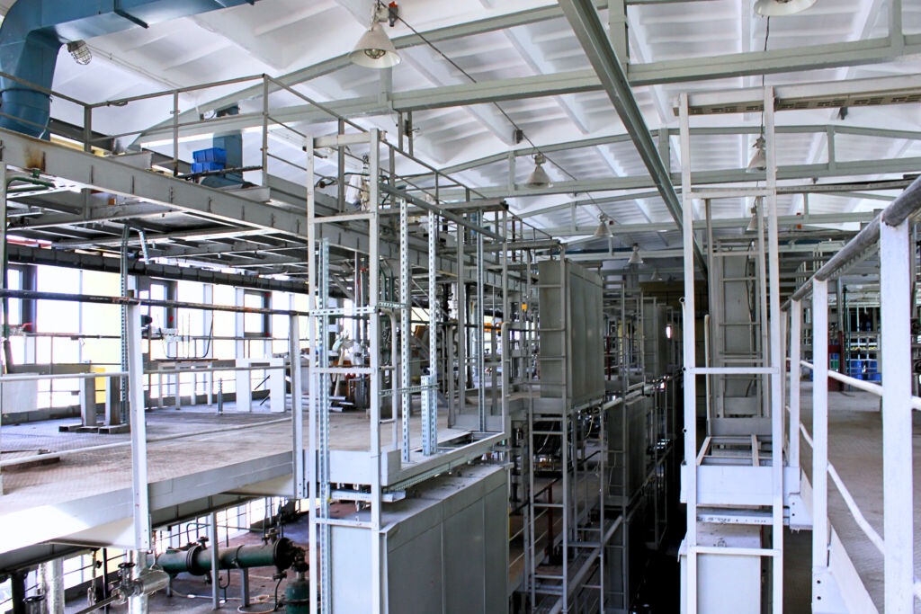 - Parę zapewniają dwa generatory pary technicznej, każdy o mocy 96 kW, co przekłada się na sumaryczną wydajność pary w instalacji na 240 kg/h, przy ciśnieniach 6 bar w części niskiej i 8 bar w części wieżowej.