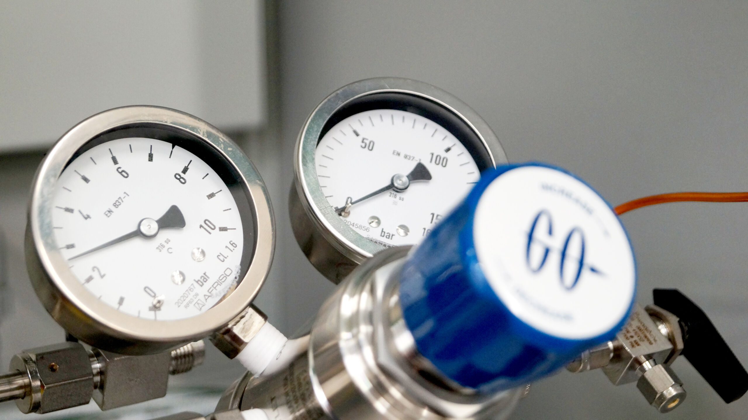 - Sprężone powietrze z kompresora olejowego z osuszaczem Atlas Copco CD 17+. Maksymalne ciśnienie robocze kompresora 13 bar, a maksymalna wydajność tłoczenia 68 m3/h.